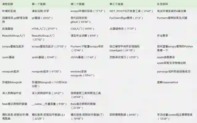 《1周学会写爬虫》是Python程序员管理团队自主研发的一套爬虫开发的学习课程. 只要您有Python入门的水平(0基础, 1小时, 即可Python入门, 可参见我们的免费视频教程), 无需其他基础, 即可通过本教程的学习, 学会使用Scrapy爬取在线内容, 并将爬取的结果存储在mongodb中,并用flask进行展示.