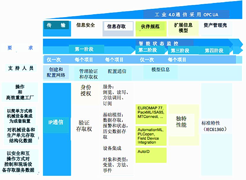 在一个企业中,基于OPC UA的工业4.0的通信可以分成四个阶段逐步实现(见图4):