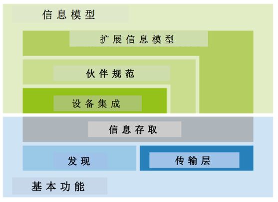 图3将图1所示的OPC UA工具箱的要素映射到OPC UA规范的逻辑分层。通过信息存取使得信息模型可被使用。而OPC UA的应用程序可按通信要求让信息模型作为服务器或发布端,以及用作客户端或订阅端。传输层描述信息存取层的技术关系,发现层则描述将OPC UA服务器列表的可能性。一般在诸如现场设备、控制器、台式计算机或IT服务器等设备中,采用OPC UA服务器作为信息的发送源。在图3中列出三种OPC UA的信息模型:设备的信息模型、伙伴规范和扩展信息模型。设备的信息模型及其集成(即设备集成)构成伙伴规范和扩展信息模型的基础。它包括设备模型(性能和功能性)、通信模型(通信的拓扑结构)和集成模型(设备集成的规则)。表1列出有关工业自动化方面的若干伙伴规范。