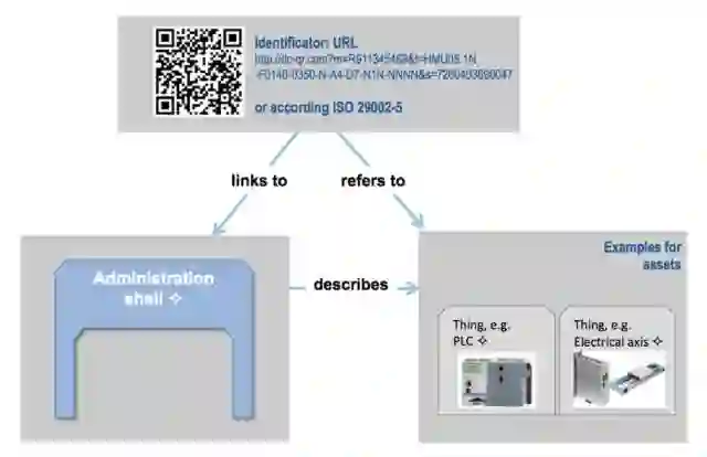 图6表述的就是这种统一的格式。标识符是URI,为每一种资产提供唯一的识别符,并与该资产对应的管理壳对应,该标识符既参照该资产的物理分类,又可链接该资产的管理壳,而管理壳的虚拟描述完全建立在其物理特性和相关数据之上。