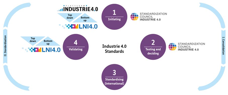 进行这项涉及面极广的组织工程,首先要保护工程领域的核心功能性(例如气动工程、焊接等);其次要造就具有最大化的灵活性,同时又能保护每个公司的信息网络;再次是为了采购、系统集成工程、维护等需要,必须持续地提高可互操作性和客户的利益。不过面对的现实却是如何使各个公司的标准、不同的数据格式和产品性能数据的集合实施合理的开放;为建立工业4.0基本单元的知识库,在各个公司的利益和公众利益之间取得平衡,‘两厢情愿’地淡化公司标准和查找性质集合。好在国际工业标准化组织已经建立了这方面的国际标准IEC61360/ISO13584,只要严格遵循这个标准,就能够有组织有规则地进行。