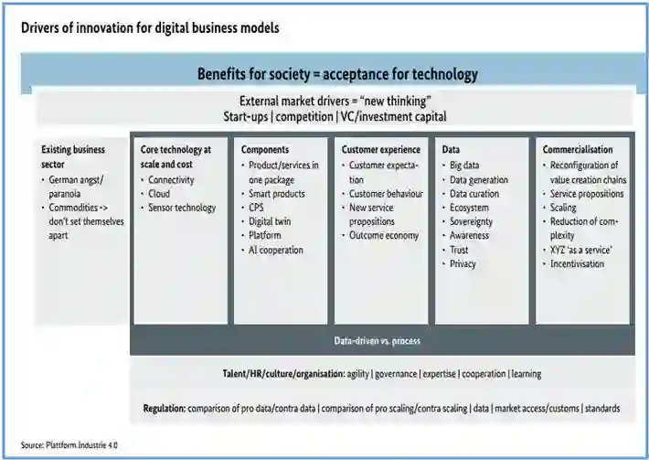 德国工业4.0平台组,专门增加了第6个数字商业模式工作组,以需求解决这些问题,并通过不同利益攸关方之间的有条理的讨论,为采取行动提供动力。