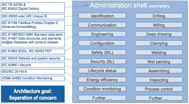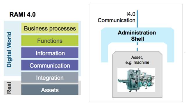 还有一个先决条件是:基本单元的真实对象必须具有通信能力,以及相应的数据和功能。这样,生产环境中的硬件单元和软件单元之间都能进行符合工业4.0要求的通信。