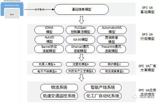 OPC UA是实现资产管理壳的落地技术,采用该架构进行工业软件功能定义的过程如下: