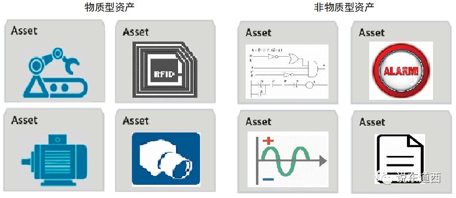 资产层处于最底层,连同其上层集成层一起被用来对各种资产进行数字化的虚拟表达。用资产层来表达物理部件/硬件/软件/文件等实体,物理部件如直线运动的轴、金属部件、电路图、技术文件、历史记录等。
