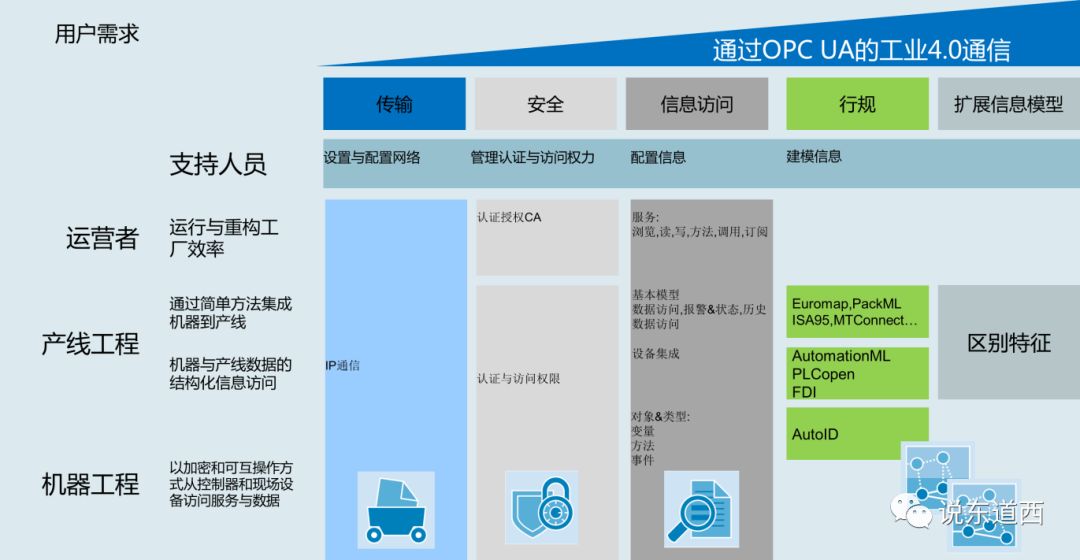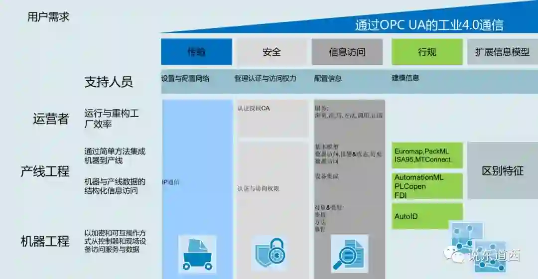图5比较全面的描述了OPCUA在实现整个工业4.0架构中的角色,涵盖: