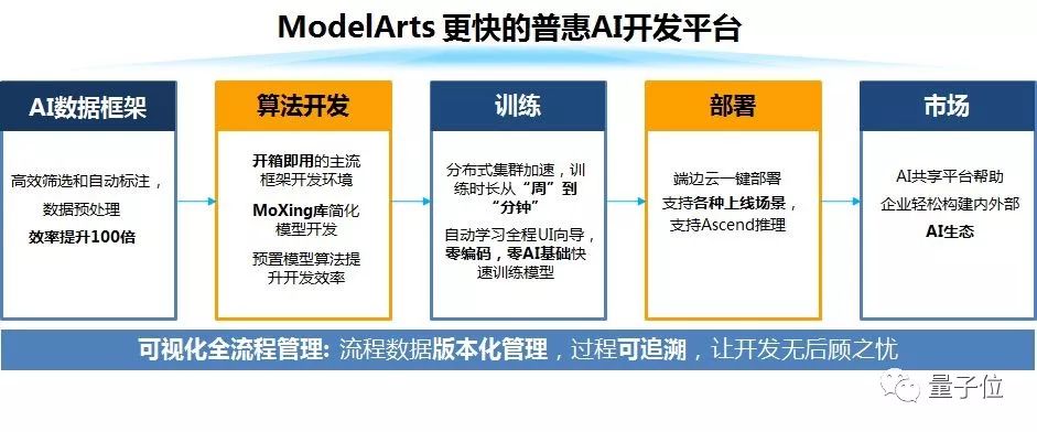 后续,华为云ModelArts将进一步整合软硬一体化的优势,提供从芯片(Ascend)、服务器(Atlas Server)、计算通信库(CANN)到深度学习引擎(MindSpore)和分布式优化框架(MoXing)全栈优化的深度学习训练平台。