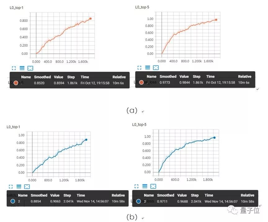 图4(a)所对应的模型在验证集上Top-1 精度≥75%,训练耗时为10分06秒;图4(b)所对应的模型在验证集上Top-5 精度≥93%,训练耗时为10分58秒。