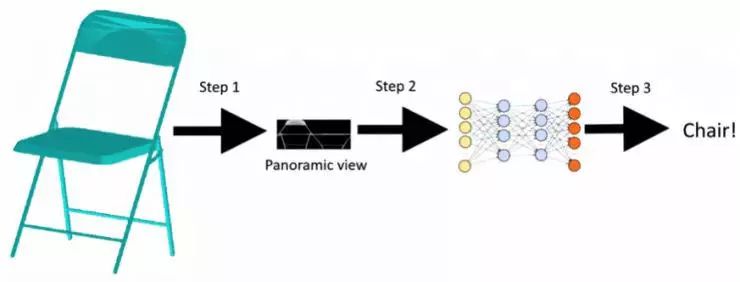 我们为什么要选取最远的点?最远的点通常集中于物体的外表面。我们将其用全景图表示,可用于识别模块。当然,有人可能会说:“圆环和高度相同的圆柱体会呈现出完全相同的全景图”或者“中心有一个球形孔的立方体和没有孔的立方体会呈现出完全相同的全景图”,这是正确的。以全景图来呈现3D物体并不完美,但如果是用体素来呈现则没有这样的缺点。幸运的是,像椅子、床、汽车或飞机这些真实存在的物体由于其复杂性,很少有相同的全景图。