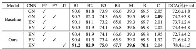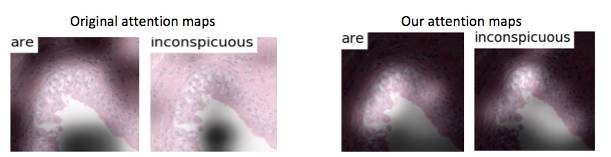 我们发现原始的 attention model(Xu et al, ICML 2015)得到的 attention 图大部分无法有效关注局部重要的图像区域。为了解决这个问题,我们引入 attention 增强模块(AAS)来辅助 attention 模块生成更佳有效的 attention 图。图 3 比较了结果。