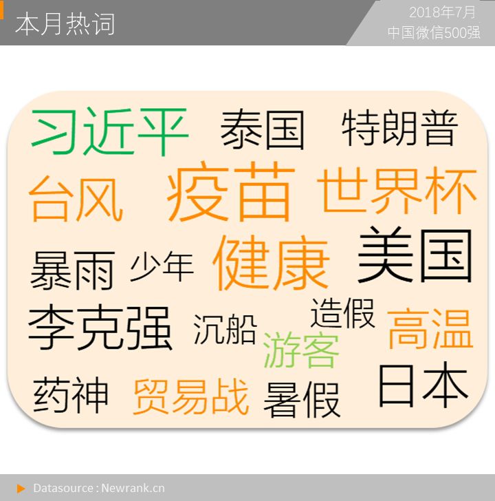 七月迎来暑假,全国范围内的高温、暴雨及台风接连吸睛;中美贸易战升级;疫苗造假事件、《我不是药神》、泰国沉船事件引发用户热议。