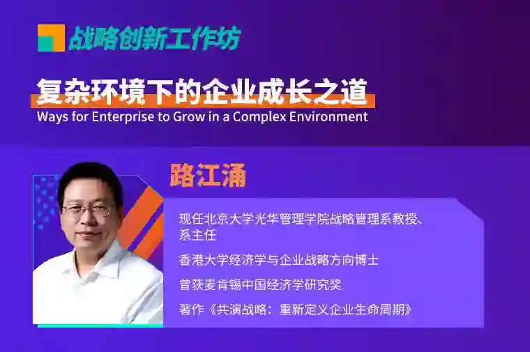 路江涌教授将带来50个实用的分析工具,帮助学员全方位分析企业战略的人和事、内部和外部等要素,理解企业生命周期各个阶段的战略要点。