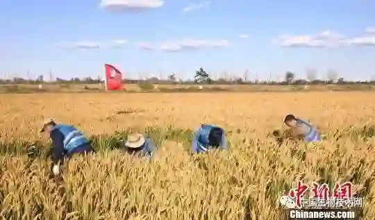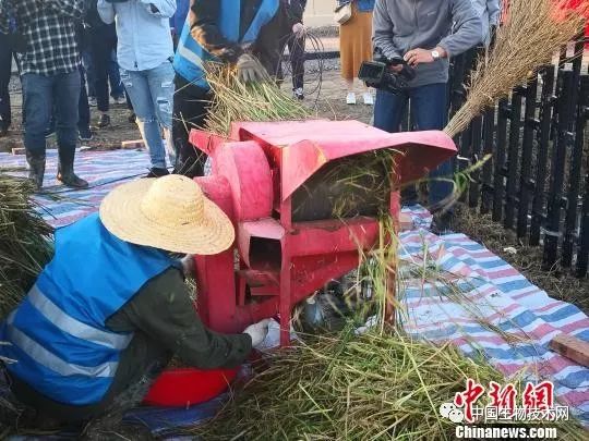 工作人员进行收割。 王作岩 摄