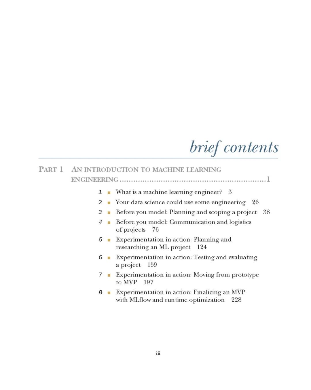 机器学习工程实战中教你设计、构建和交付成功的机器学习项目的核心原则和实践。您将发现软件工程技术,如在您的原型上进行实验和实现模块化设计,从而产生弹性架构和一致的跨团队通信。基于作者丰富的经验,本书中的每一种方法都被用于解决现实世界的项目。
