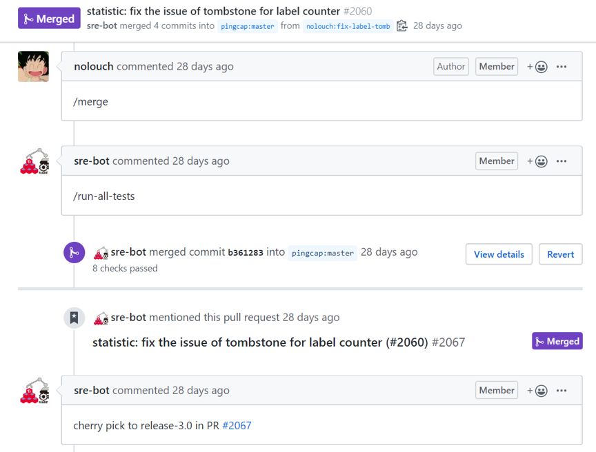 SRE 机器人自动 Merge PR 并 Cherry-pick 到 Release 分支