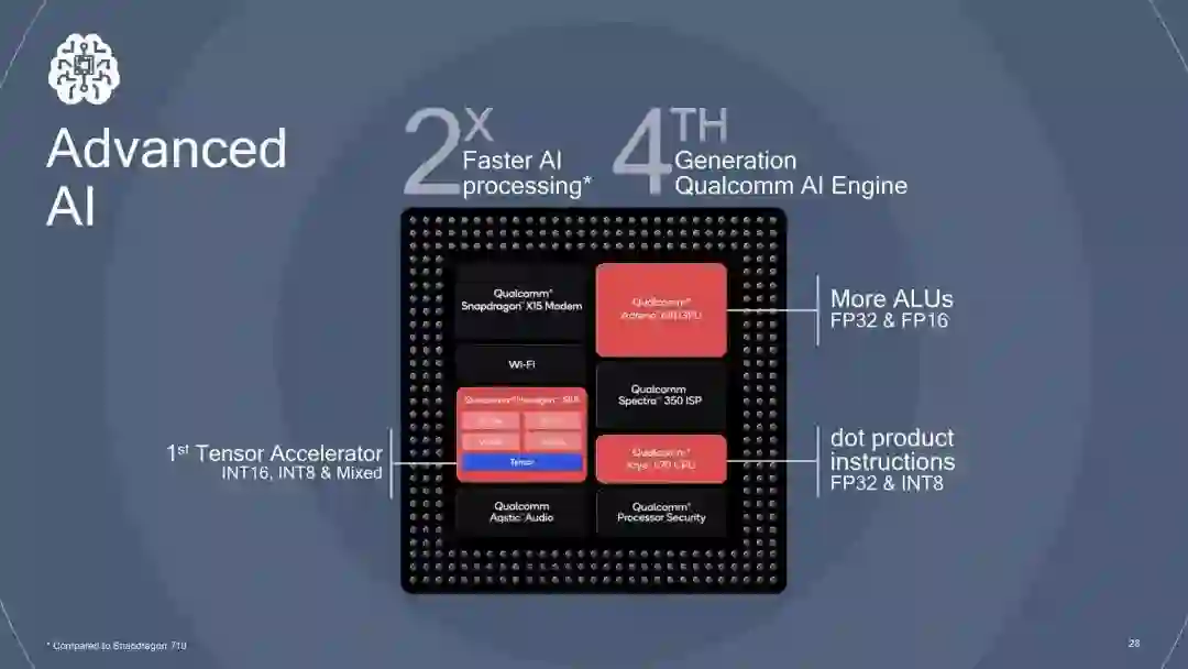 同时,高通宣称其AI性能快了两倍,但未做具体解释。