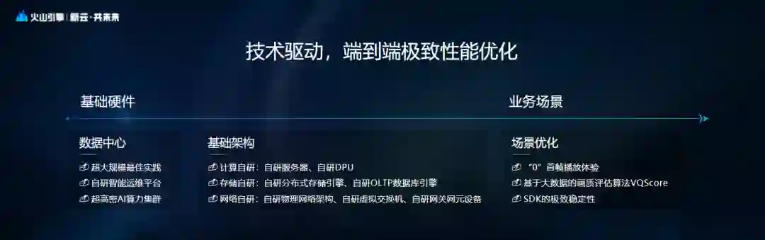 很多公司做云的时候都是新搭建一套体系,然后再把内部业务迁移过来,这也是主流的做法。但是火山引擎采取了另一条路,不同于腾讯云和阿里云,从根本上就要求统一,在内部采用一套技术设施部署,这套同源架构的做法,确保了火山引擎云服务的稳定和性能。