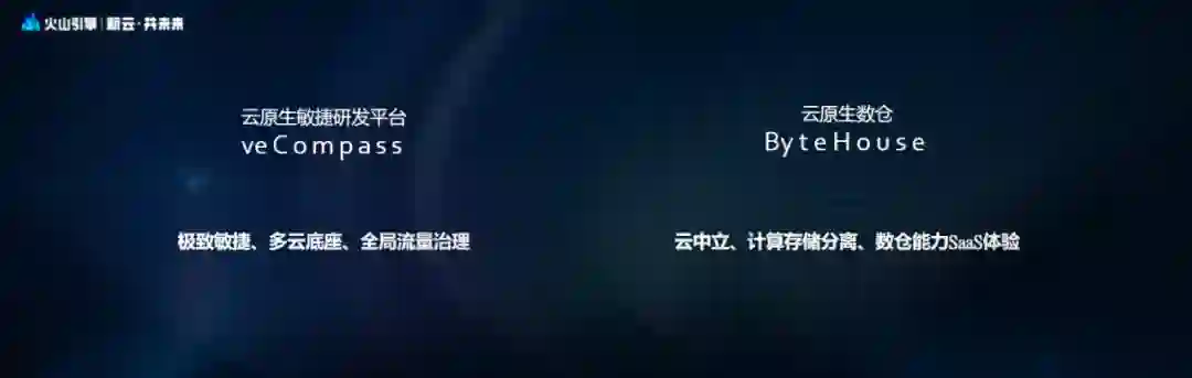 涉及有状态和无状态两种类型问题的优化,企业对存储引擎、底层网络互联互通的布局等情况都需要重新设计,也需要通过多余的管理平台来做好这件事情。基于这种情况,火山引擎除了发布了前文提到的 ByteHouse,还发布了 veCompass。未来,火山引擎计划开放更多工具服务,帮助客户提供多云咨询或者服务。