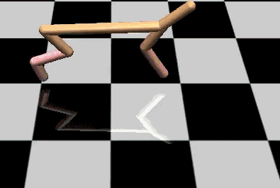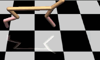 参数噪声可以帮助算法高效地探索出合适的动作范围,在环境中获得优良表现。如图1、图2所示,经过216个episode的训练之后,没有加入参数噪音的DDPG会频繁产生低效的奔跑行为,而加入参数噪声训练之后产生的奔跑行为得分更高。
