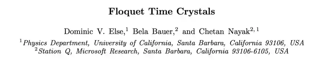 紧接着,在2016年,加利福尼亚大学圣巴巴拉分校和微软的研究人员根据pi spin-glass phase提出了Floquet「时间晶体」的存在。