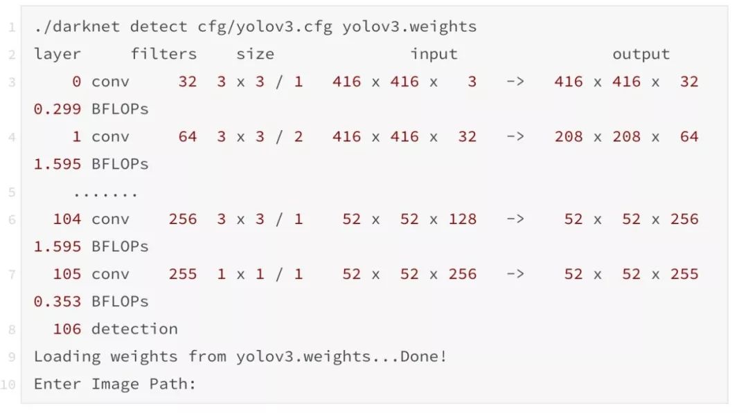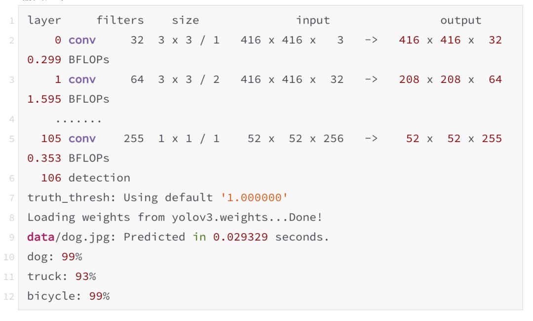 在命令行不给出图像信息的话就可以连续运行多个图片。当加载完配置和权重,你将看到如下提示: