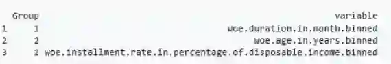 在woe.binning.deploy 函数的帮助下,规则得以在数据集上运行。我们需要的变量通过woe.get.clear.data函数分配给“train-woe”对象。