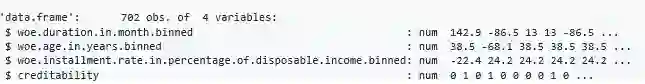 colnames(ms_train_data) <- c("woe.duration.in.month.binned","woe.age.in.years.binned","woe.installment.rate.in.percentage.of.disposable.income.binned","creditability","PD")