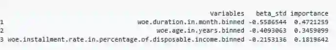 包含在数据集中的变量形成了一个模型。当模型摘要检查变量时,这些变量似乎是有意义的。然后,借助于“woe.glm.feature.importance”函数,变量的权重得以计算。实际上,权重是根据单个单位变化对概率的影响来计算的。
