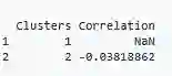 在某些情况下,集群的平均相关性很重要,因为集群的数量可能设置不正确。因此,如果集群具有较高的平均相关性,则应该对其进行详细检查。相关性值(在集群1中的唯一变量)是NaN。