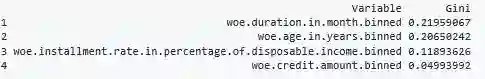 eliminated_data <- Gini_elimination(train_woe,"creditability",0.10)