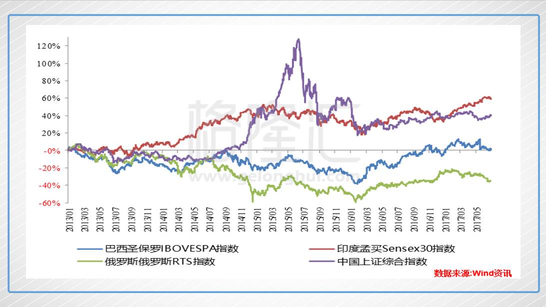 3.金砖国家中股票市场表现最佳:印度的股价指数自2013年以来上涨了59%,保持了稳定上涨的势头,2016年以来也是金砖国家中表现最好的。