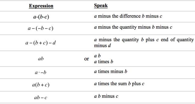 a-(-b-c)读作a minus the quantity minus b minus c,使用quantity是英语语言习惯,避免plus和minus连在一起说。