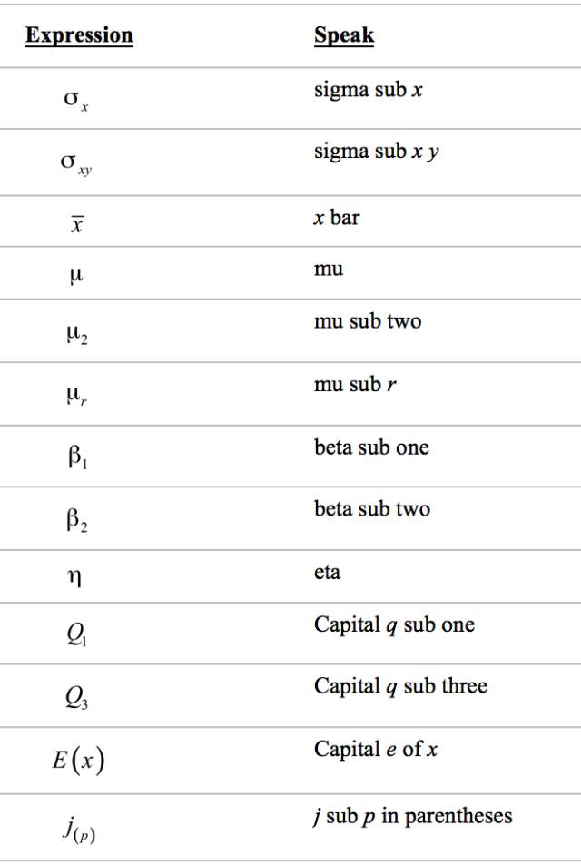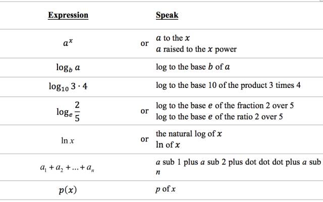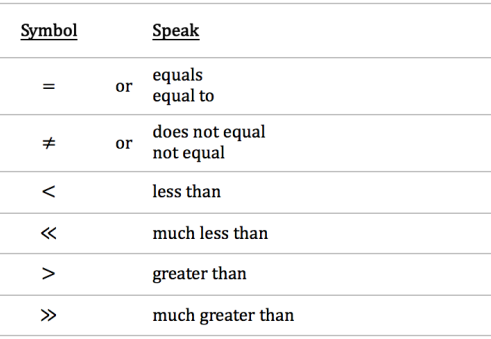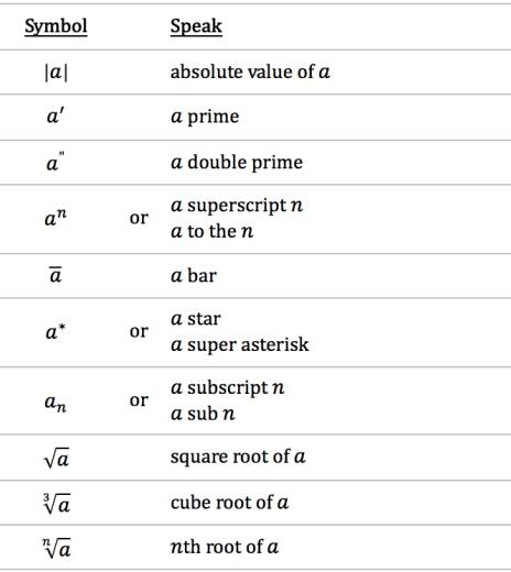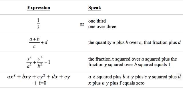 其他的类推,只要你认识数学符号,应该不难用英语说出来。