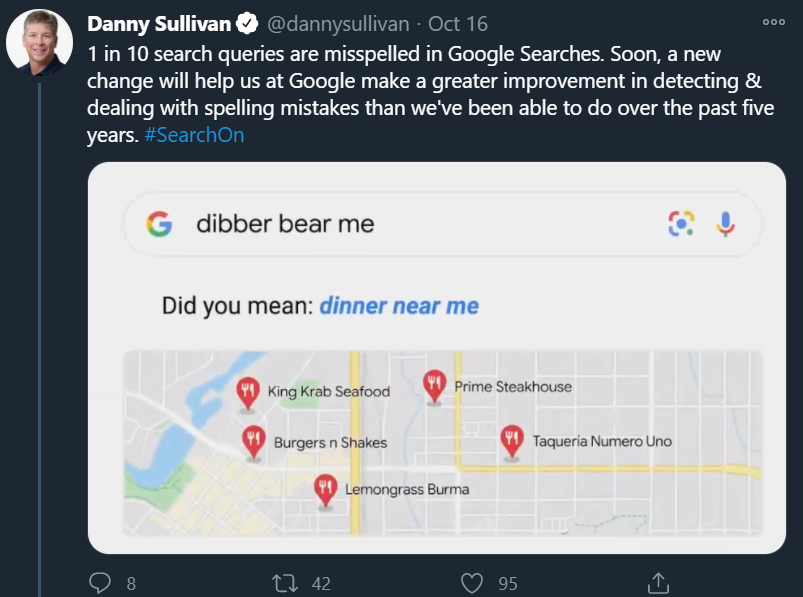 在谷歌搜索中,有十分之一的搜索查询拼写错误。很快,一项新的变革将帮助我们在检测和处理拼写错误方面取得比过去五年更大的进步。
