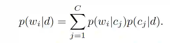 在上面的公式中,概念模型的未知参数是单词概念概率p(wi|cj)和概念文档概率p(cj|d)。