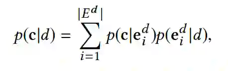 例如,注意概率p(cj|d)可以解决前面提到的标记问题,因为每个这样的分布都告诉我们文档d表示的概念cj的混合。