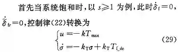 从式 (29) 可以发现控制量达到执行器所能达到的最大限制值时,σ 值会收敛于 T_(f_de),保证原有的积分值稳定不发散。