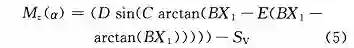 荷兰学者 Pacejka 提出的魔术公式模型是用特殊正弦函数建立的轮胎纵向力、侧向力和回正力矩模型。基于魔术公式轮胎回正力矩的非线性表达式可以由下式得到: