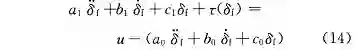 式中:a_0,b_0,c_0 分别表示转向系统等效转动惯量、等效转动阻尼和等效转动刚度的测量误差,认为误差有界,|| a_0 || ≤ Δa_0,|| b_0 || ≤ Δb_0,|| c_0 || ≤ Δc_0。