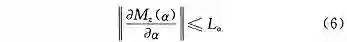从图 2 中可以看出 M_z(α) 和 ∂M_z(α)/ ∂α 在定义域内是连续的,那么 M_z(α) 满足局部利普希茨条件: