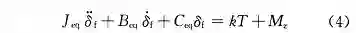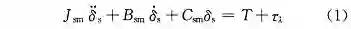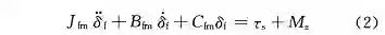式中:J_eq 表示转向系统等效转动惯量,J_eq = J_fm + k^2*J_sm ;B_eq 表示转向系统等效转动阻尼,B_eq = B_fm + k^2*B_sm ;C_eq 表示转向系统等效转动刚度,C_eq = C_fm + k^2*C_sm