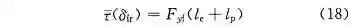 式中:l_e 表示由于主销后倾角产生的侧向作用力与主销之间的距离,记为主销后倾拖距;l_p 表示轮胎拖距;F_yf 表示转向轮受到的侧向力;轮胎拖距 [15] l_p ≈ 1/3*l_L,l_L 表示轮胎接地印迹面长度。