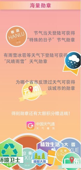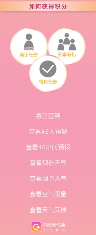 由中国气象局官方推出的APP中国天气通近日更新了带有用户系统的全新版本,用户注册后,每天可通过完成各种有趣的任务,获取积分。