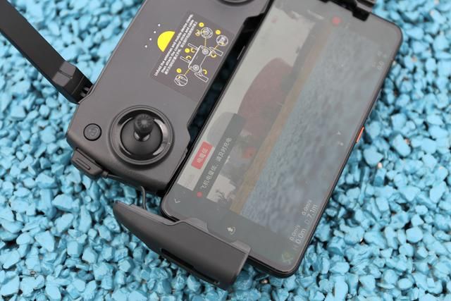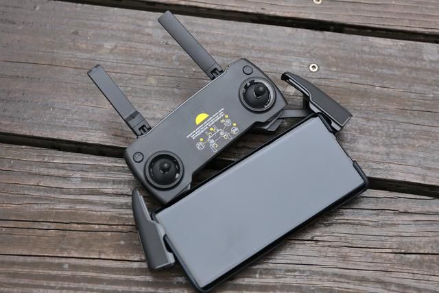 Mavic Mini 搭配的手柄是没有屏幕的,所以需要配合手机使用,在手柄的下方是可折叠手机卡扣,我拿我的 vivo NEX3 6.89 寸屏幕,三围尺寸 167.44x76.18x9.4mm,太长了夹装很费力。