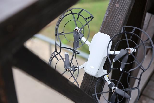 全向桨叶保护罩设计还是刷新了对无人机的认识,在这寸土寸金的 Mavic Mini 上开发了一套卡扣式的保护罩,实用又轻便。室内,新手的必备利器。