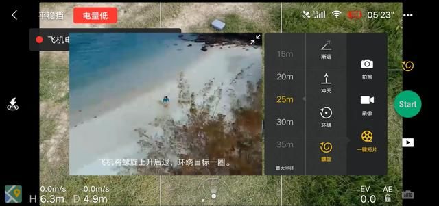 这里需要注意的是,在这些模式开始之前,一定要确定周边的环境,在选择模式后,还有一个半径可以选择,这个半径就是旋转半径,你要确定的是在这个半径之内不能有障碍物会被飞机碰撞到,不然后果很严重。