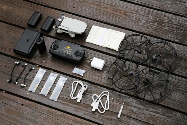 配件方面,相信前面介绍大家也知道畅飞套装多了哪些东西,虽然包装盒不大,但内部容积的利用率还是很高的。拆包装的感受是,全向桨叶保护罩也太轻巧了吧,蛮大一只拿在手上感觉不到重量。其次飞机真心很轻,但手柄挺沉的。畅飞套装里面的附件还是挺足的,这也是大疆一直在用户优秀体验感受上的多次尝试的结果吧。