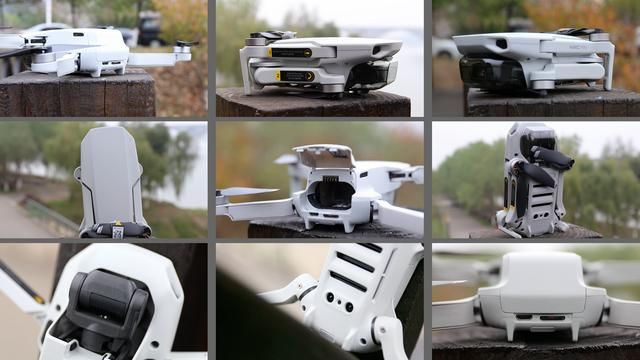 喜欢大疆产品的一个原因是,因为大疆无人机 Mavic Mini 在室内也能飞行,双目视觉系统能够让 Mavic Mini 在室内也能够正常飞行的需求,不过要避免有强烈反光或者倒影的表面飞行,可能会造成双目视觉系统失效;电池仓设计在尾部,还有一个盖子保护。机身上设计有不少散热孔。