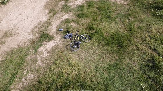 第二玩法,那就是把无人机当助手用,将无人机定点在一个位置,然后特定视频,比如我骑自行车越过一个山丘的视频,如果有了无人机那就很方便了。