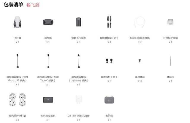 这其中主要是电池管家和电池想要畅爽飞行,这两个不能少,目前新品刚出配件来价格也下不来,所以标准版和畅飞版的选择,不为别的,就为那一充电方便,目前建议入手畅飞套装;